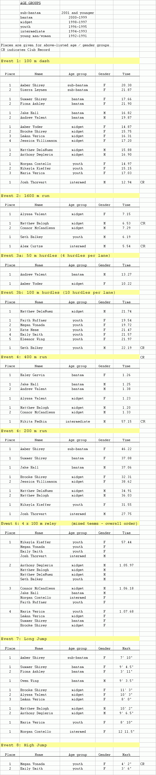 Nittany Track & Field team practice meet - July 14, 2009