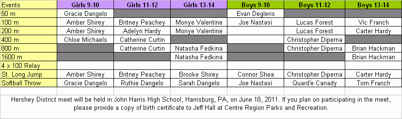 Hershey's Track and Field District Qualifiers from State College Area (May 2011)
